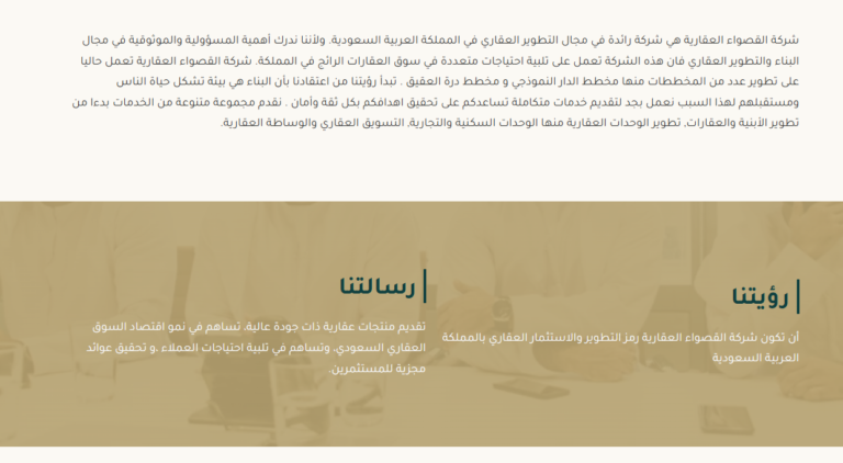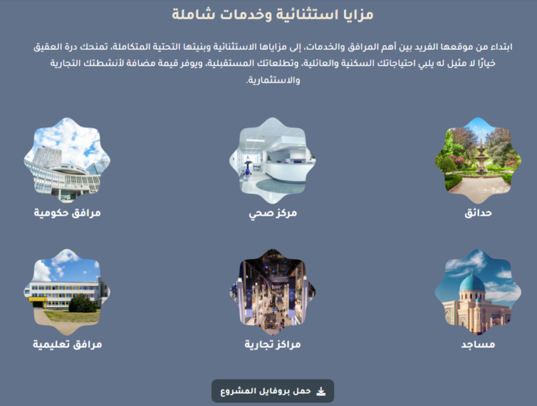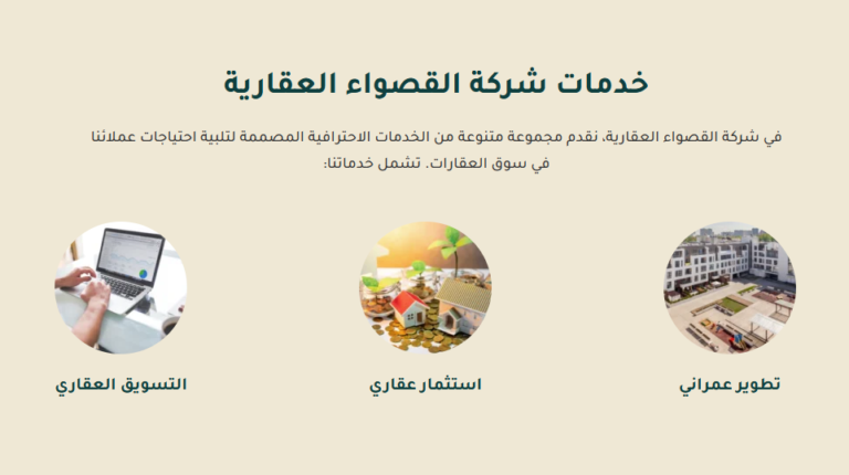 - عرض الخدمات: أقسام شاملة توضح بالتفصيل التطوير الحضري للشركة، والاستثمار العقاري، وخدمات التسويق.