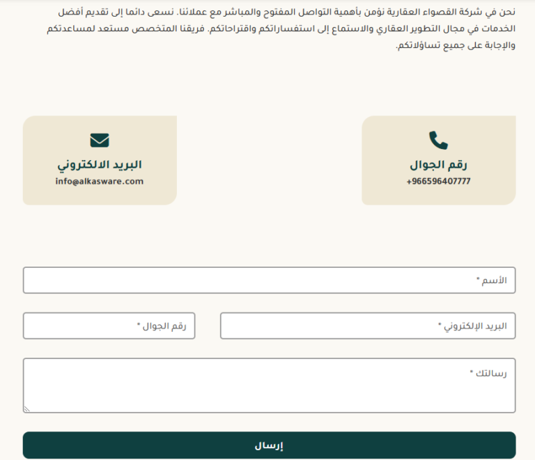 - تكامل جهات الاتصال: نماذج سهلة الاستخدام ومعلومات الاتصال لاستفسارات العملاء.
