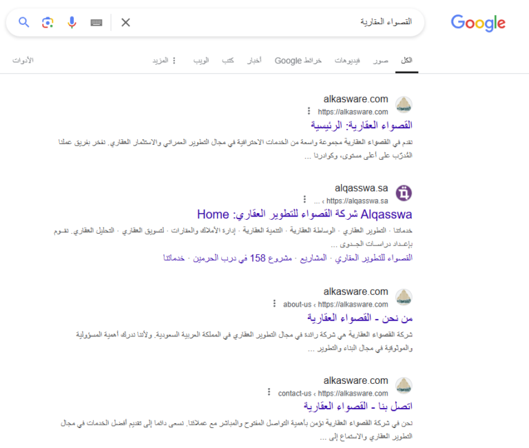 أصبح موقع شركة القصواء العقارية أداة قوية للشركة، حيث يعزز حضورها على الإنترنت ويدفع العملاء إلى التفاعل معها. وقد وضعهم التصميم البديهي والعرض الاحترافي في مكانة رائدة في سوق العقارات السعودية التنافسية. وهم حاليًا في صدارة نتائج بحث جوجل على الرغم من وجود منافسين أقدم يحملون نفس الاسم، وهو ما يؤكد خبرتنا فيما نقوم به. انظر الصور أدناه.