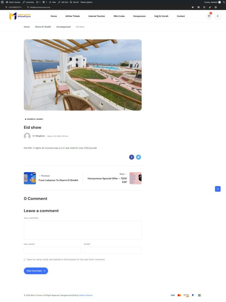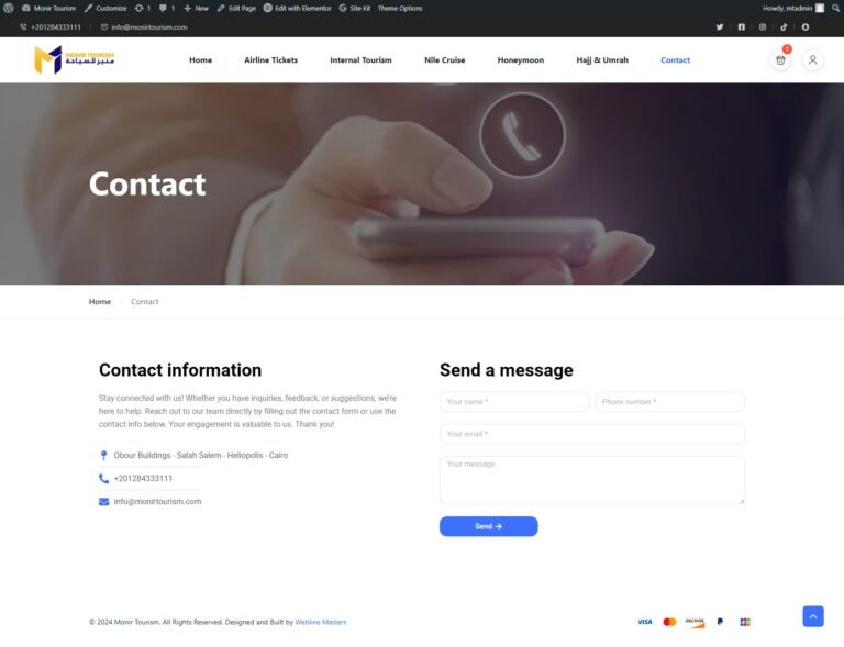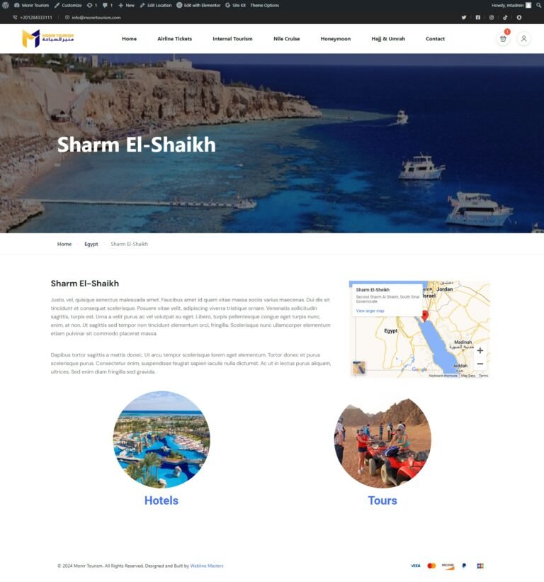 Monir Tourism is a dynamic travel and tourism agency based in Egypt, specializing in hotel bookings, tour packages, and exclusive travel deals both locally and internationally. The company aims to make travel planning effortless and affordable by offering competitive rates on accommodations, flights, and curated experiences.