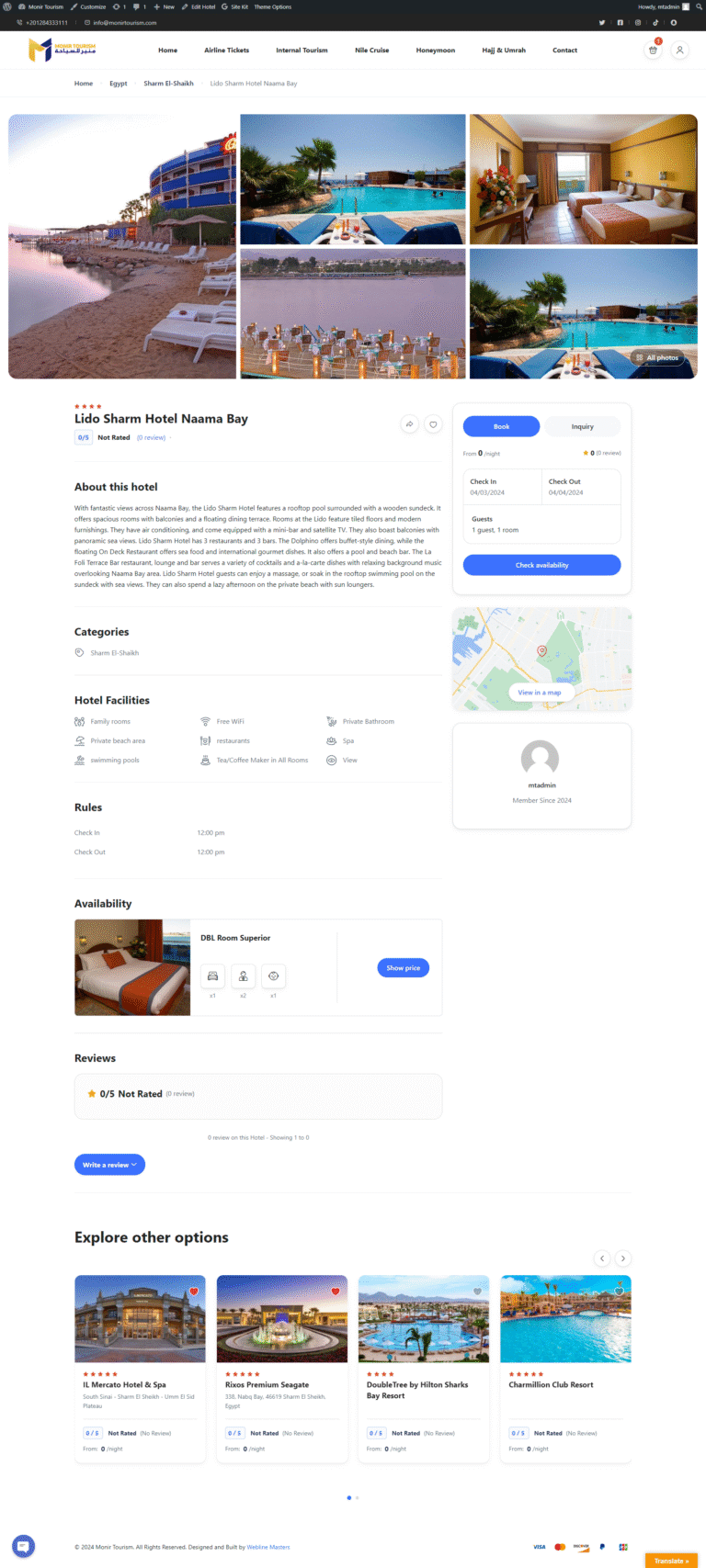 - Hotels: Built a custom post type for hotels, including detailed room information, amenities, pricing, photo galleries, and contact details.